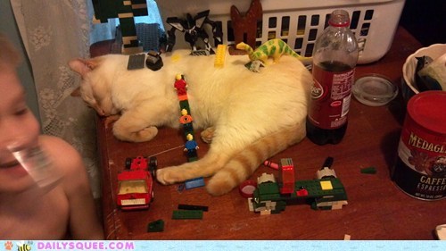 Well since cats don't have thumbs maybe this is the only way he can play Legos too!