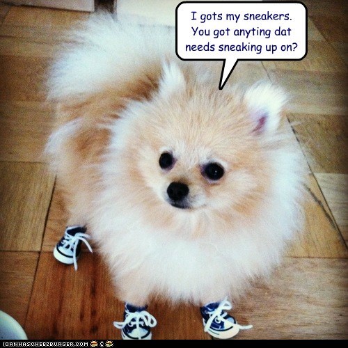 I gots my sneakers. You got anyting dat needs sneaking up on?