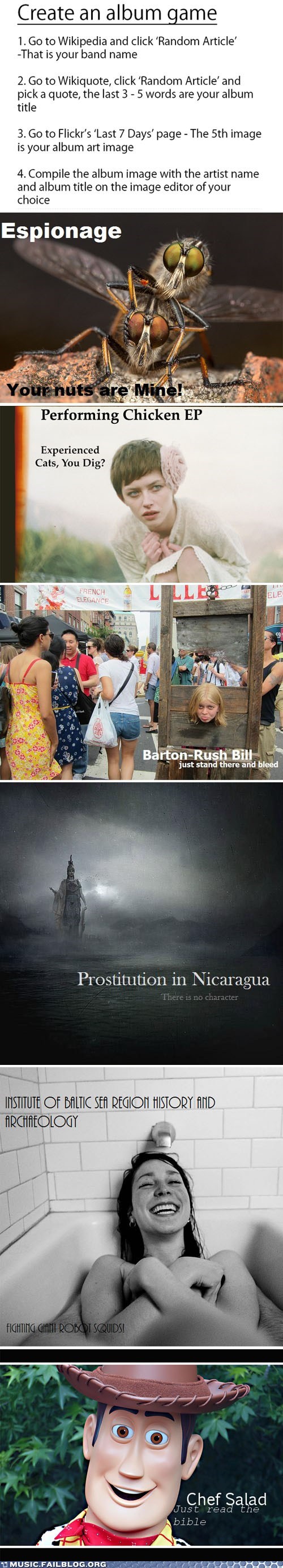 A week ago, Reddit reposted the album randomizer game that we reposted from 4chan (reposts are the Internet's way of showing it cares). The folks over in that corner of the web made a few good ones of their own.