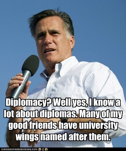 Diplomacy? Well yes, I know a lot about diplomas. Many of my good friends have university wings named after them. (