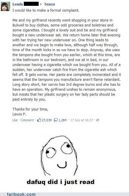 Watch out guys, Tesco brand underwear can be very dangerous.