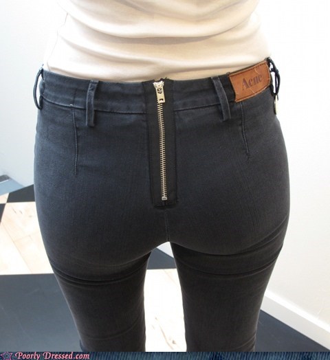 I got it, we'll make super-tight jeans easier to wear by putting the zipper in a really inconvenient space. Brilliant!