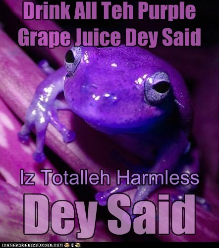 Drink all teh purple grape juice day said. Iz totalleh harmless day said!