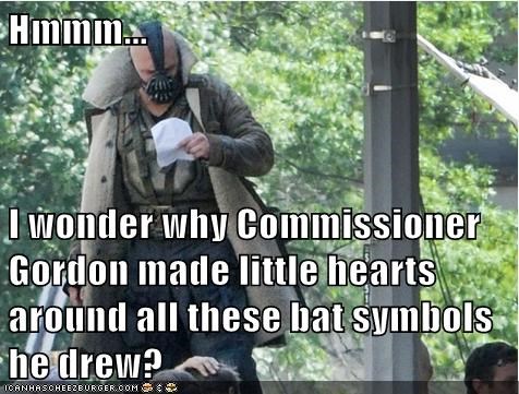 Hmmm... I wonder why Commissioner Gordon made little hearts around all these bat symbols he drew?