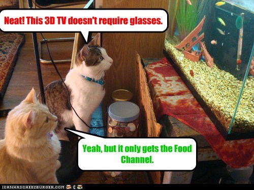 Neat! This 3D TV doesn't require glasses. Yeah, but it only gets the Food Channel.