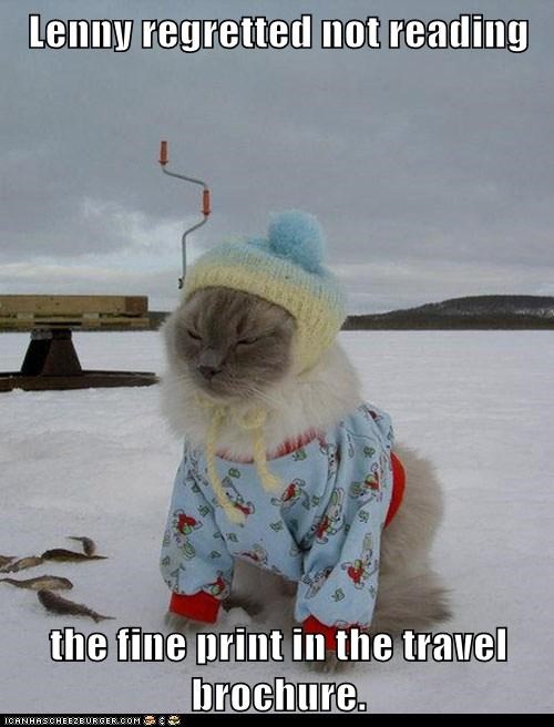 Lenny regretted not reading the fine print in the travel brochure.