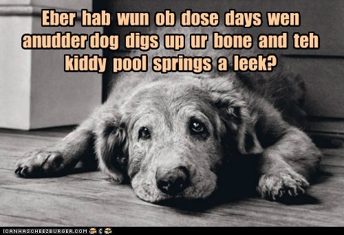Eber hab wun ob dose days wen anudder dog digs up ur bone and teh kiddy pool springs a leek? awww dats turrible, but dun gib up!