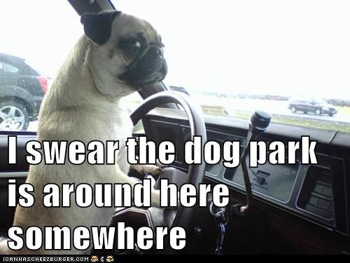 I swear the dog park is around here somewhere. y r u teh 1 dribing???