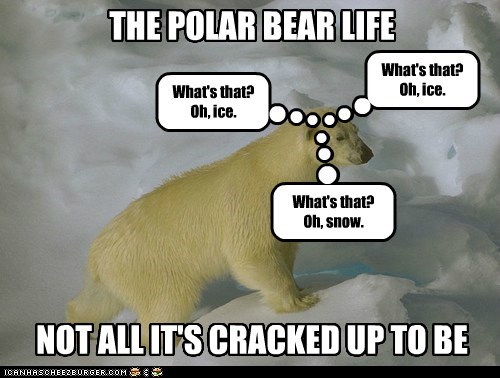 THE POLAR BEAR LIFE: What's that? Oh, ice. What's that? Oh, ice. What's that? Oh Snow. NOT ALL IT'S CRACKED UP TO BE
