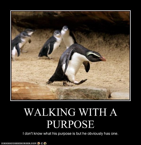 WALKING WITH A PURPOSE I don't know what his purpose is, but he obviously has one.