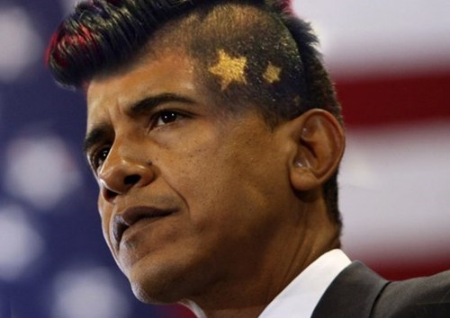 @stefanjbecket promptly threw down a challenge: "Is someone going to shop the president with a mohawk or do I have to do everything around here"