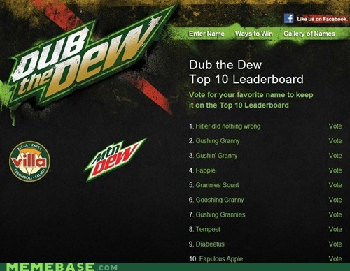 Mountain Dew are having a contest for people to decide what the name of their next drink will be.