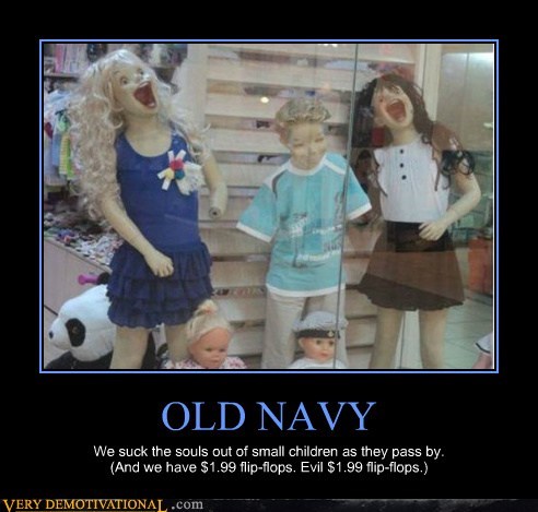 OLD NAVY we suck the souls out of small children as they pass by. (and we have $1.99 flip flops. Evil $1.99 flip flops.)