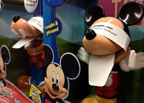 "I was a little unnerved when I unpacked these. The piece in the mouth is meant to keep the battery from running down while in shipment. I don't know why they felt they had to blindfold them as well."