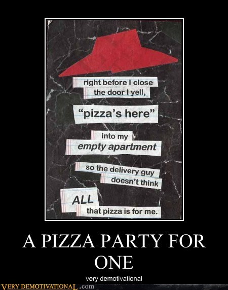 A PIZZA PARTY FOR ONE very demotivational
