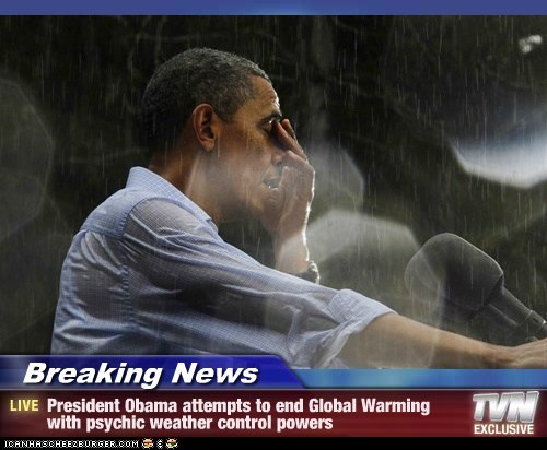 Breaking News - President Obama attempts to end Global Warming with psychic weather control powers