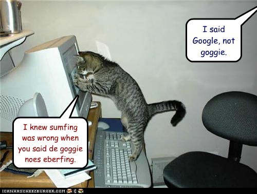I knew sumfing was wrong when you said de goggie noes eberfing. I said Google, not goggie. Ai still doan't trust dis 'google' fing.