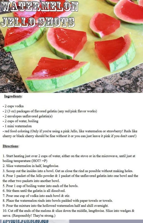Hope everyone's weekend was fruitful, because your Monday is about to be just that. It's never too early for creatively shaped jello shots that would make drunk Bill Cosby proud.