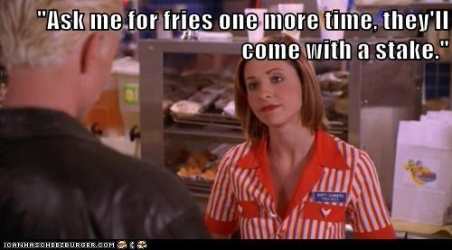 "Ask me for fries one more time, they'll come with a stake."