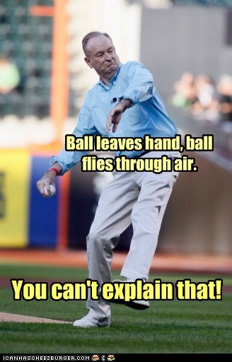 Ball leaves hand, ball flies through air. You can't explain that! (Bill O'Reilly)