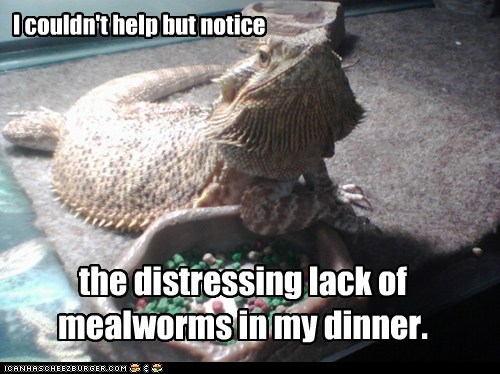 I couldn't help but notice the distressing lack of mealworms in my dinner.