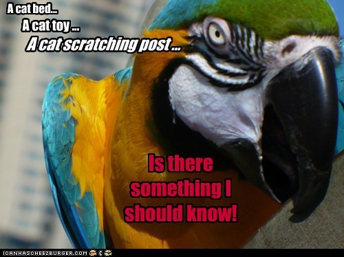 A cat bed... a cat toy... a cat scratching post... Is there something I should know?!