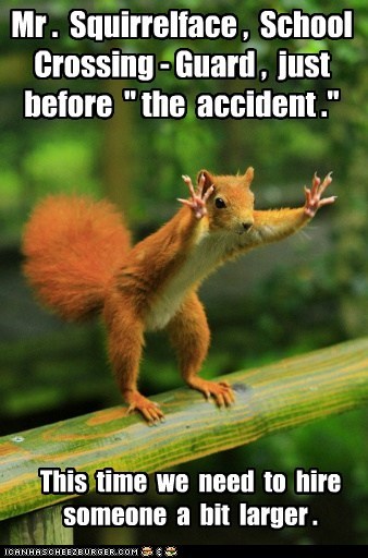 Mr. Squirrelface, School Crossing-Guard, just before "the accident." This time we need to hire someone a bit larger.