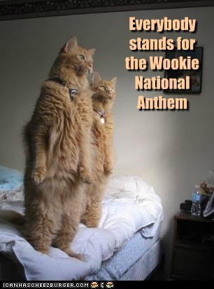 Everybody stands for the Wookie National Anthem