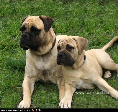 U voted last week in da Face Off between da Bullmastiff and da Shar Pei 2 determin wich goggie wud b teh breed ob teh week dis week. An luk!! Teh Bullmastiff wins!!