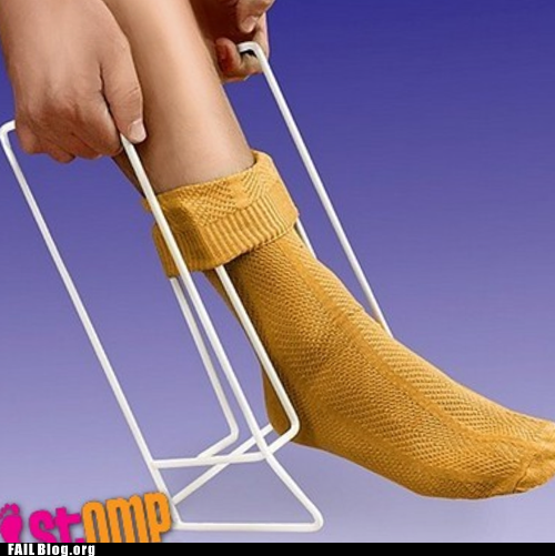 Let's be real here: If for some reason or another you couldn't lean over far enough to put on your own socks, those handles are going to need to be much longer than four inches above your heel.