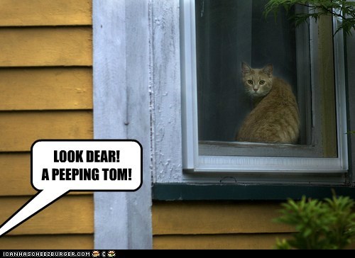 LOOK DEAR! A PEEPING TOM! Wait, hao do we kno his naem is Tom??