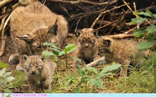 There isn't anything squeer than lynx cub triplets! Except maybe quadruplets...