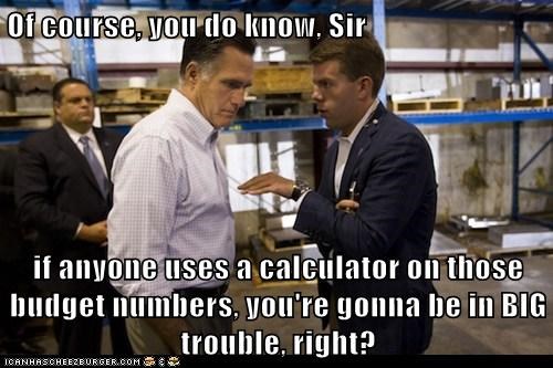 Of course, you do know, sir if anyone uses a calculator on those budget numbers, you're gonna be in BIG trouble, right? (Mitt Romney)