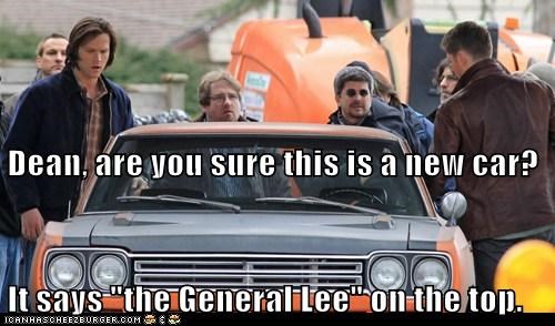Dean, are you sure this is a new car? It says "the General Lee" on the top.