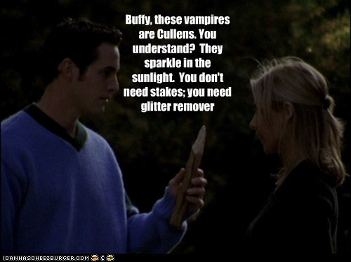 Buffy, these vampires are Cullens. You understand? They sparkle in the sunlight. You don't need stakes; you need glitter remover