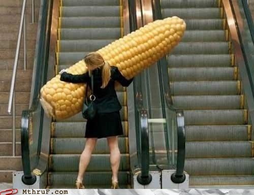 You're just hauling a gigantic piece of corn up an escalator only to have it fall back down again?