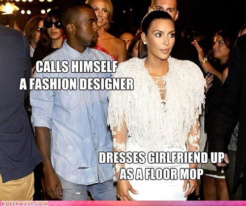 Calls himself a fashion designer. Dresses girlfriend up as a floor mop.