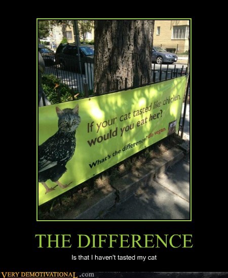 THE DIFFERENCE is that I haven't tasted my cat.