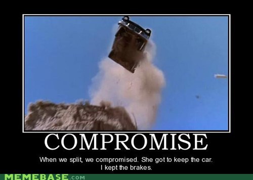 COMPROMISE when we split, we compromised, she got to keep the car, I kept the brakes.