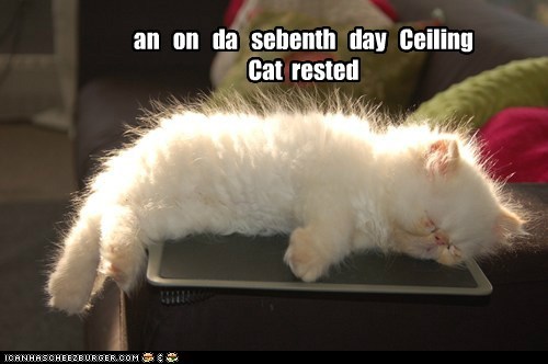 an on da sebenth day Ceiling Cat rested Its a ruff lief foar a ceiling cat.