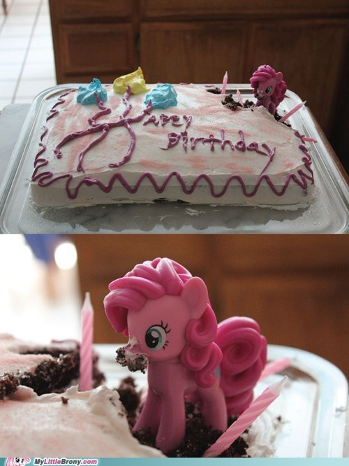 Pinkie made my mom feel younger by eating the side of her cake with the candles.