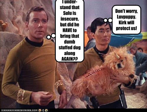 I under- stand that Sulu is insecure, but did he HAVE to bring that dumb stuffed dog along AGAIN??