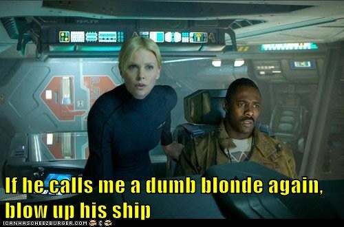 If he calls me a dumb blonde again, blow up his ship