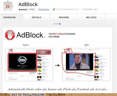 Did I just get rickrolled by an Ad Blocker?