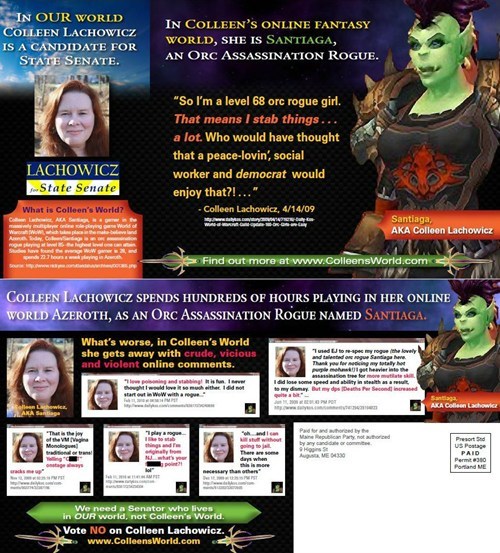 So this is the age we live in -- Maine state Senate candidate Colleen Lachowicz is an avid World of Warcraft player, and she's catching all kinds of hell for it from her Republican opponents.