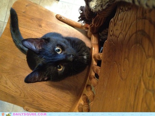 My 7 month old kitten Midnight begging for the bag of treats he just saw me put away.