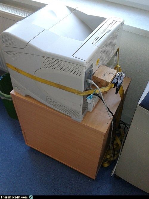 Broken fuser unit? No problem? We got a broken pallet and an old tension belt as well. Let's see...