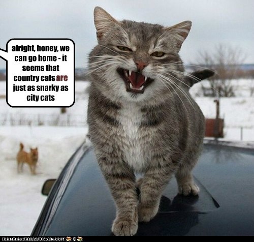 alright, honey, we can go home - it seems that country cats are just as snarky as city cats