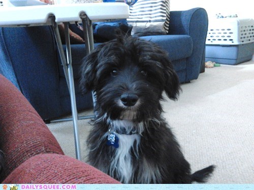 Lily_Rose says: "This is our schnauzer/poodle puppy, Dexter, about a month ago. I gave him his first peanut and he wanted more!"