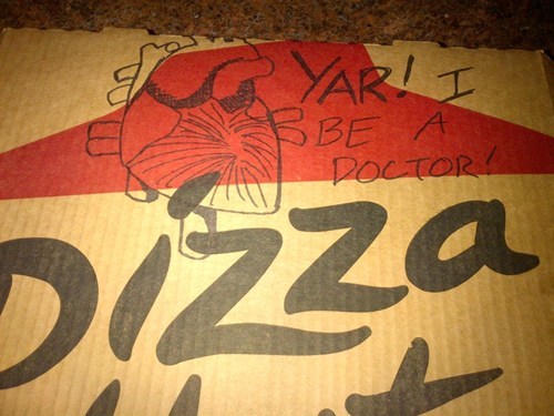 The special instructions said "draw a heart on the box" -- the pirate doctors at Pizza Hut interpreted it literally.